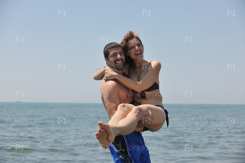 Счастливая пара на пляже