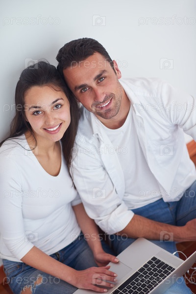 Счастливая пара с ноутбуком
