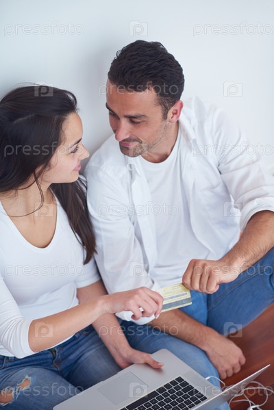 Счастливая пара с ноутбуком