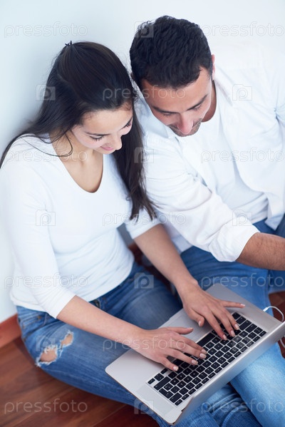 Счастливая пара с ноутбуком
