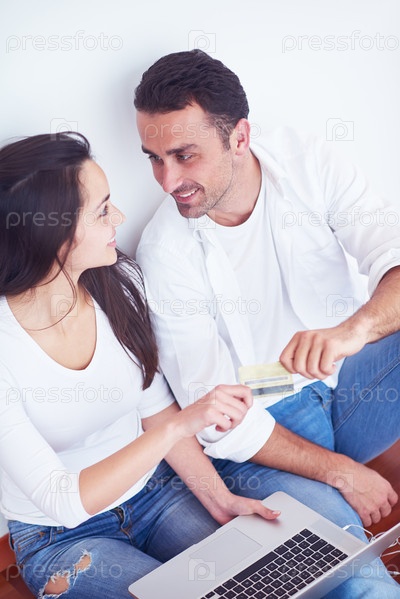 Счастливая пара с ноутбуком