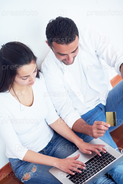 Счастливая пара с ноутбуком