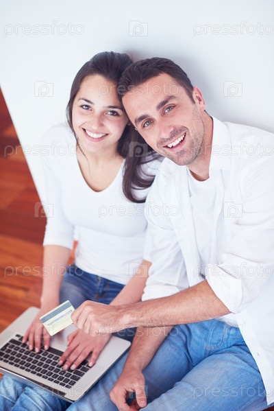 Счастливая пара с ноутбуком
