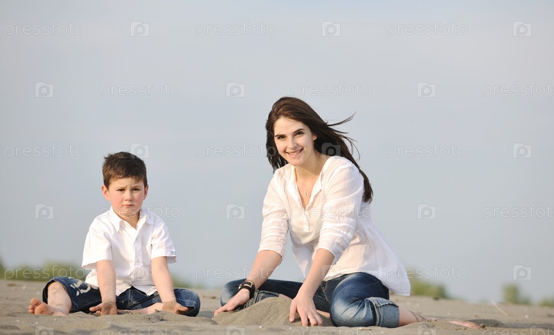 Мать и сын на пляже