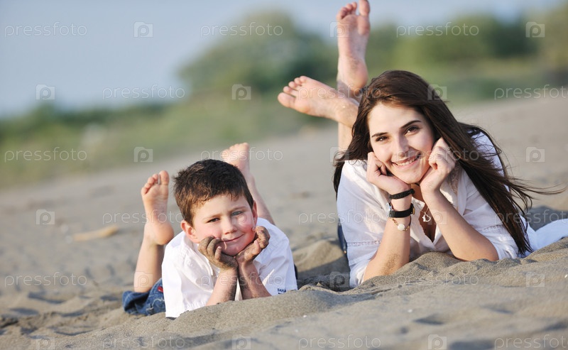 Мать и сын на пляже