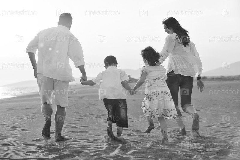 Счастливая семья на пляже