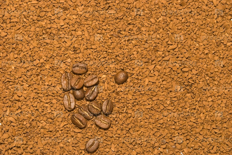 Кофейные зерна и сухой растворимый кофе