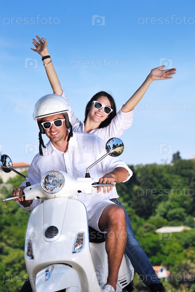 Счастливая пара на скутере