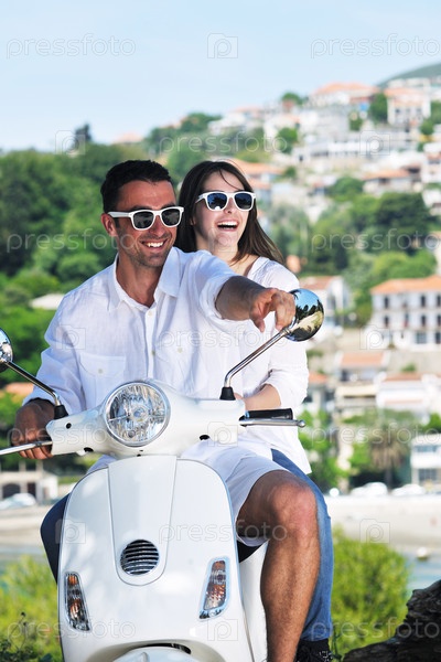 Счастливая пара на скутере