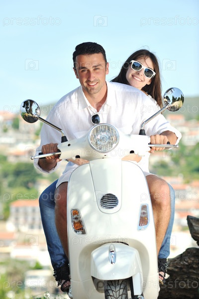 Счастливая пара на скутере