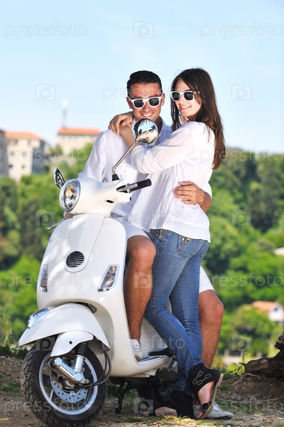 Счастливая пара на скутере