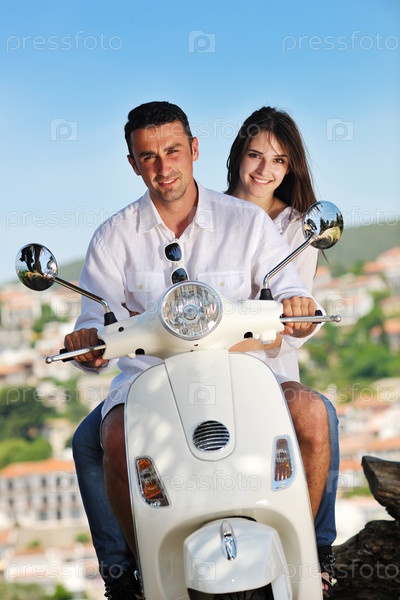 Счастливая пара на скутере