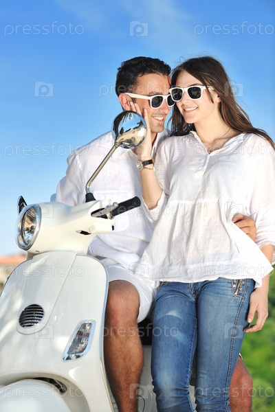 Счастливая пара на скутере
