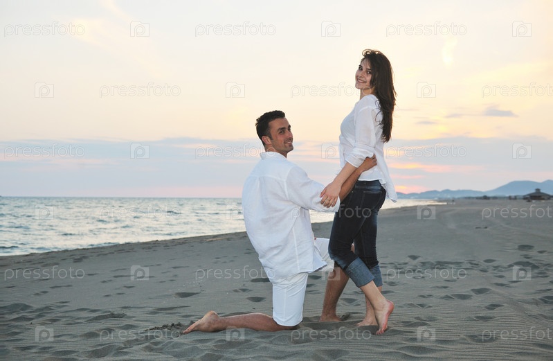 Счастливая молодая пара на пляже