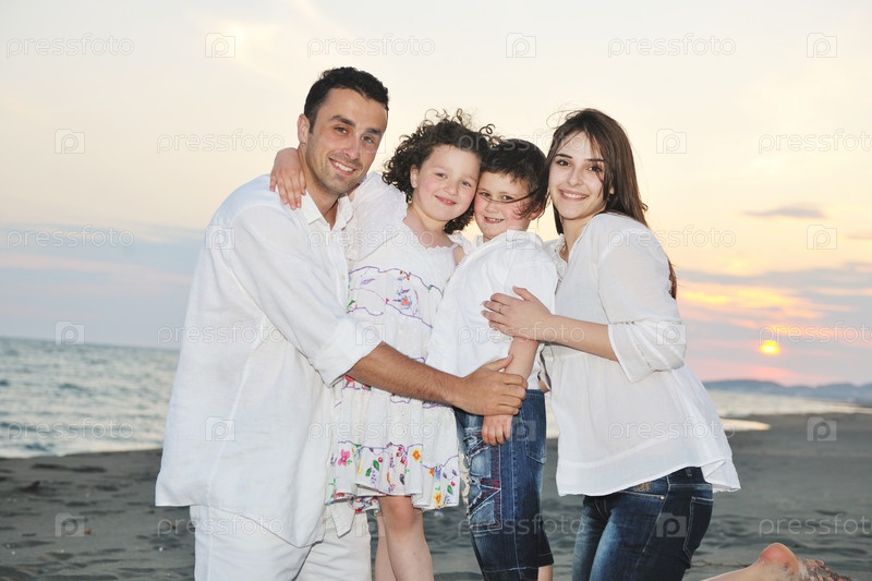 Счастливая семья на пляже