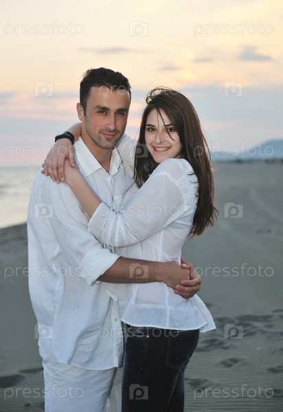 Счастливая молодая пара на пляже
