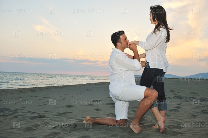 Счастливая молодая пара на пляже