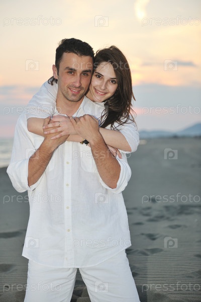 Счастливая молодая пара на пляже