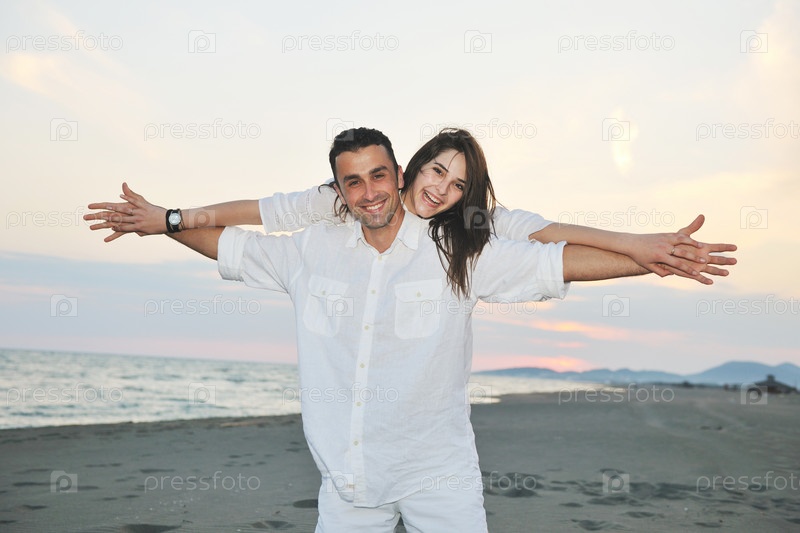 Счастливая пара на пляже