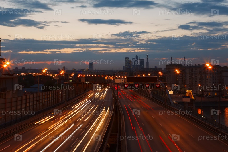 Ночное шоссе на фоне Москвы