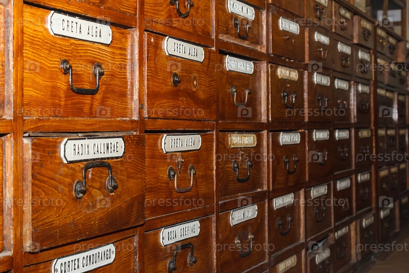 Деревянные ящики для лекарственных средств с надписями на латыни