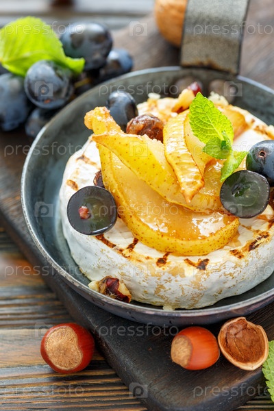 Камамбер, запеченный с грушей и черным виноградом