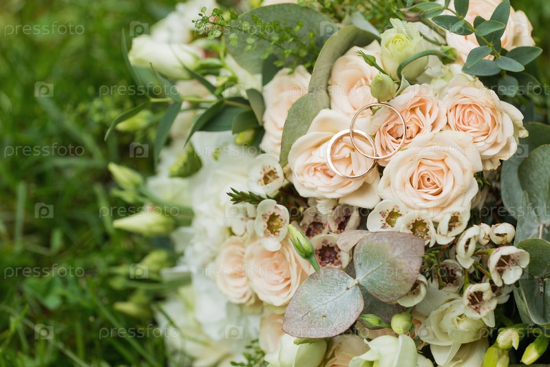 Красивый свадебный букет и кольца