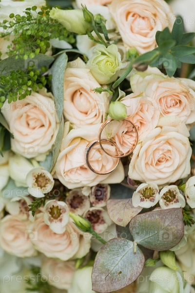 Красивый свадебный букет и кольца