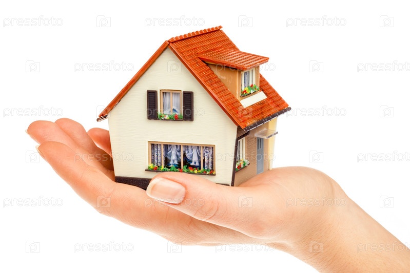 Дом в человеческих руках на белом фоне