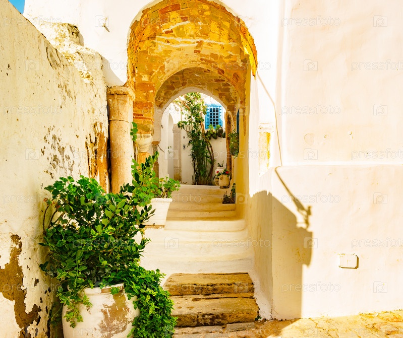 Сиди-Бу-Саид деревня с традиционной тунисской архитектурой