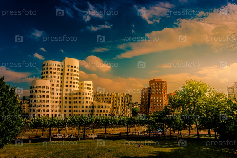 Медиа-Харбор на реке Рейн в Дюссельдорфе в Германии