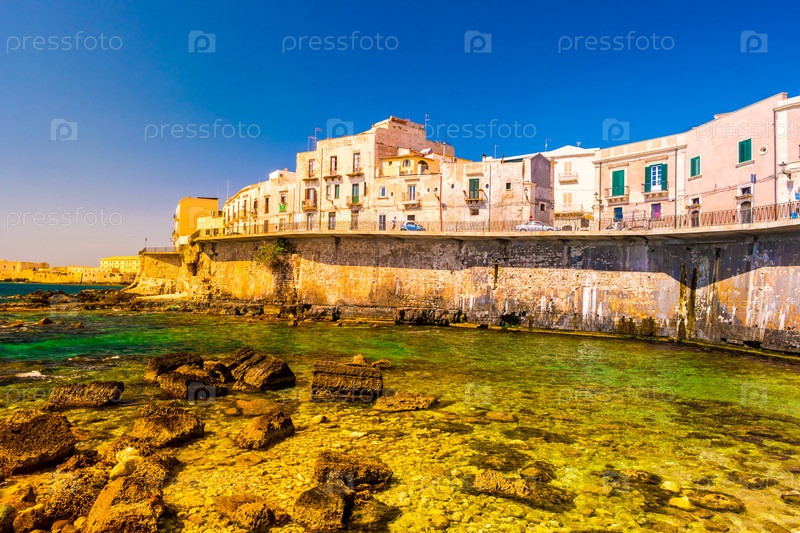 Побережье острова Ортиджия в городе Сиракузы