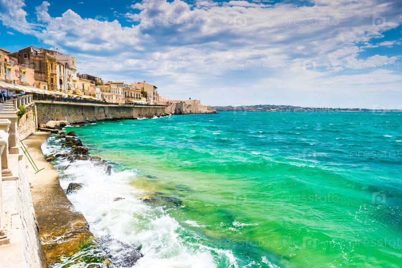 Побережье острова Ортиджия в городе Сиракузы