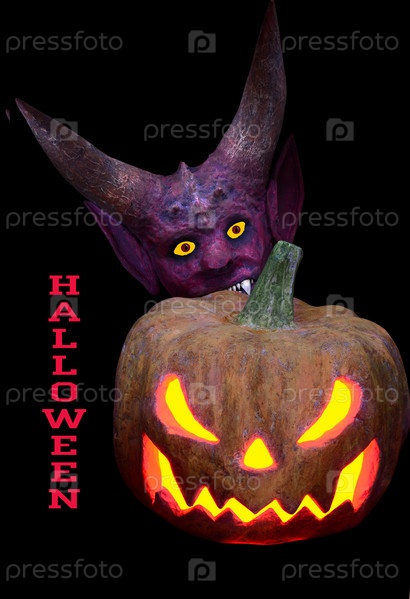Страшная тыква и дьявол с рогами для Хэллоуина