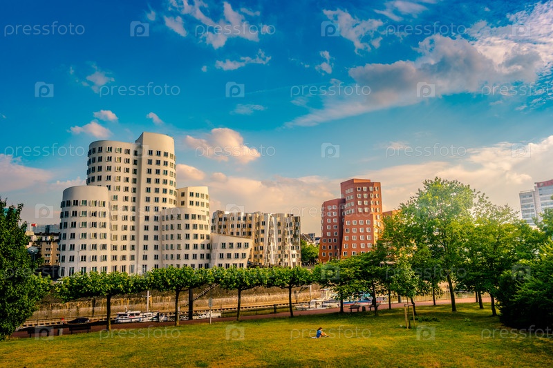 Медиа-Харбор на реке Рейн в Дюссельдорфе в Германии