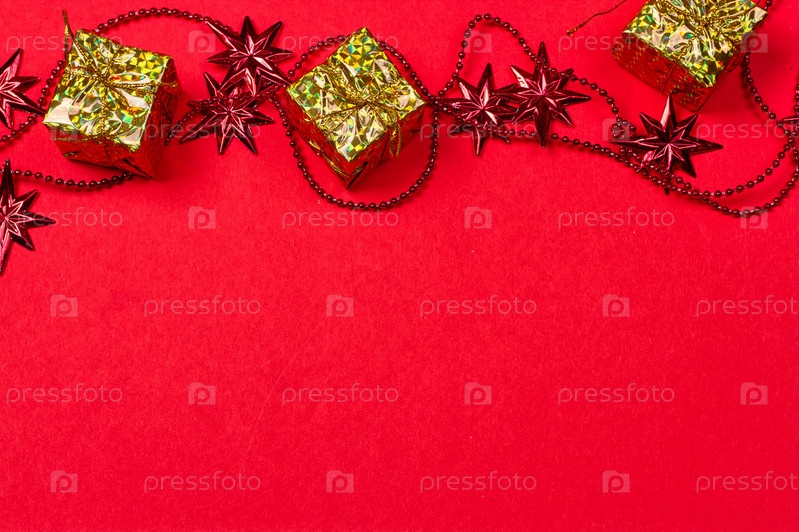 Красный фон с подарком и украшением