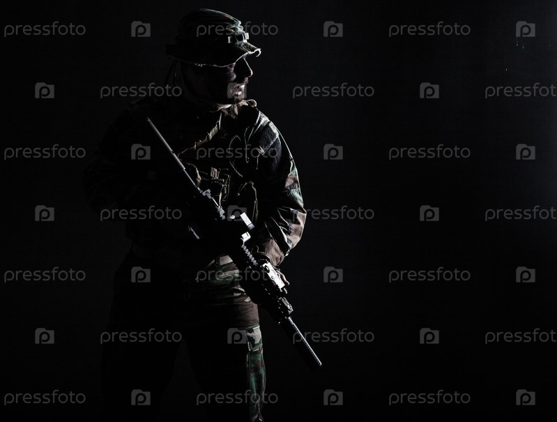 Солдат в форме для войны в джунглях