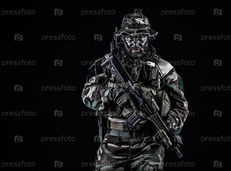 Солдат в форме для войны в джунглях