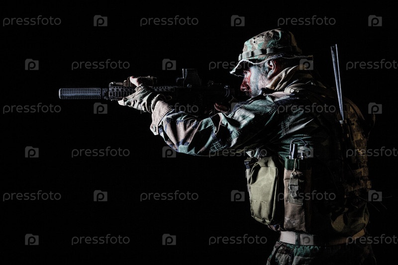 Солдат в форме для войны в джунглях