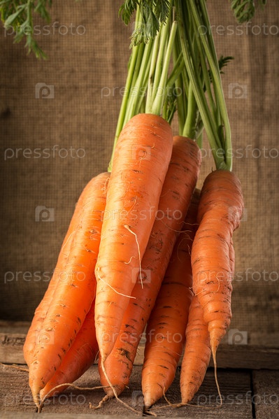 Свежая морковь на деревянном фоне