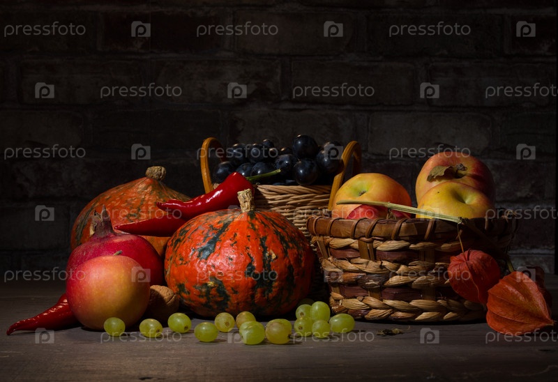 Натюрморт с фруктами и тыквой