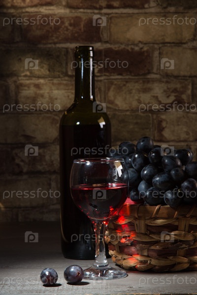 Вино и корзина с виноградом