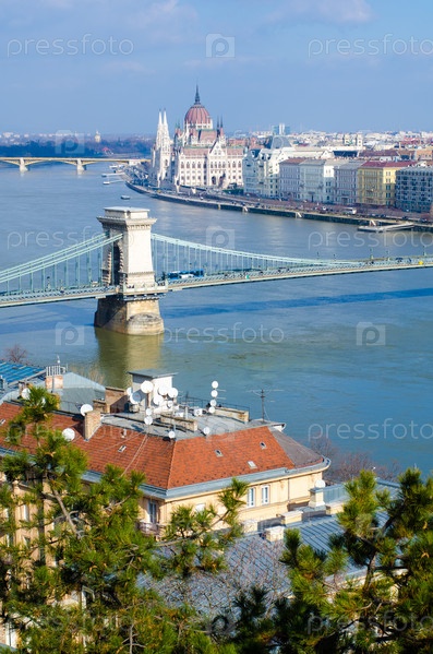 Здание венгерского парламента в Будапеште на реке Дунай, Венгрия