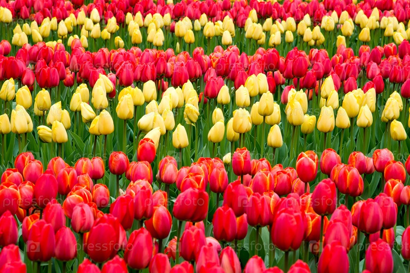 Красные и желтые тюльпаны в саду
