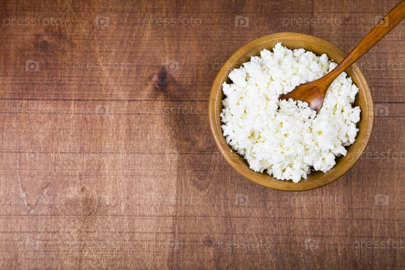 Творог в деревянной миске
