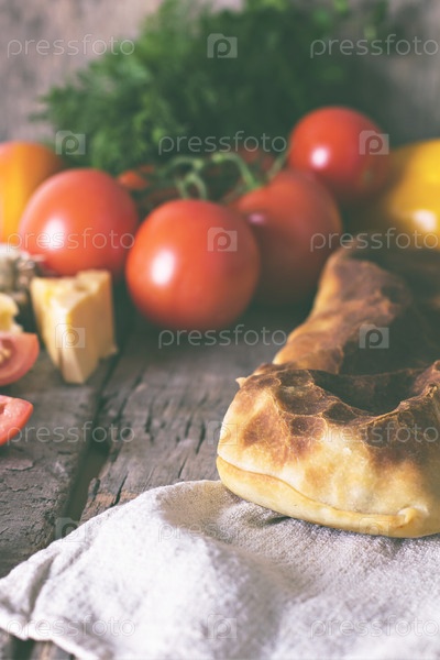 Самодельный рулет с курицей, сыром и овощами