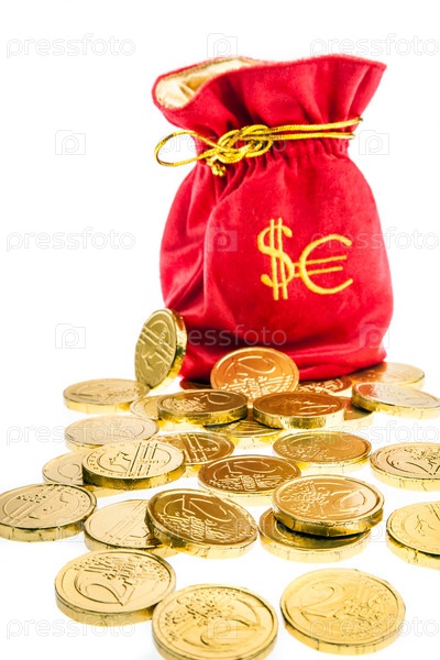 Мешок с монетами на белом фоне