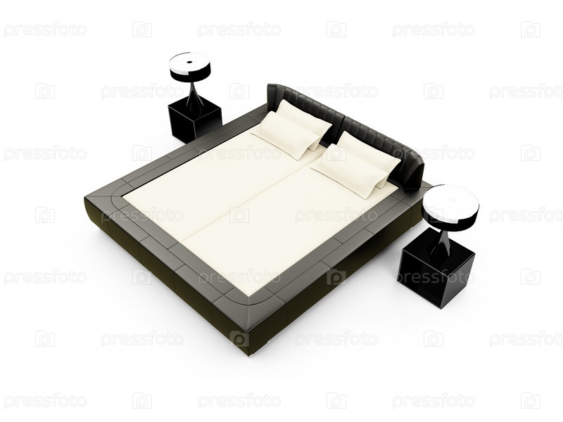 Двуспальная кровать на белом фоне