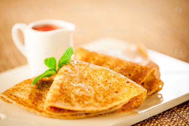 Блины с соусом, завтрак