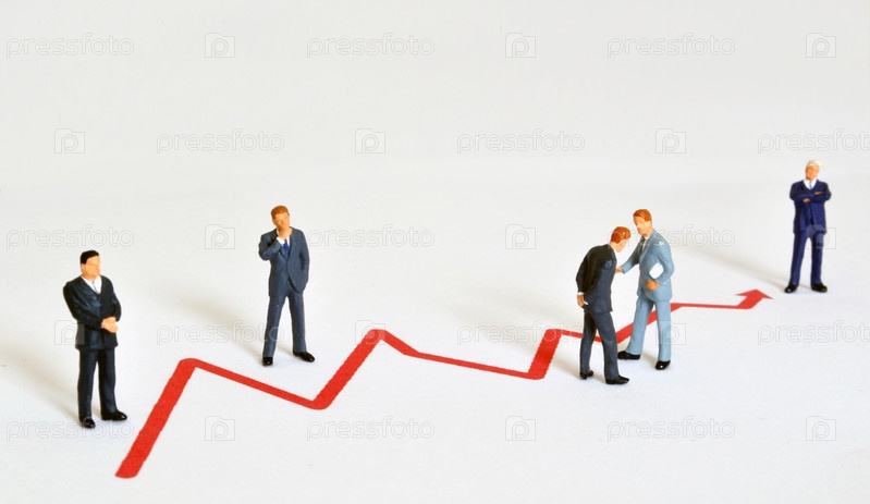 Группа менеджеров и график развития бизнеса